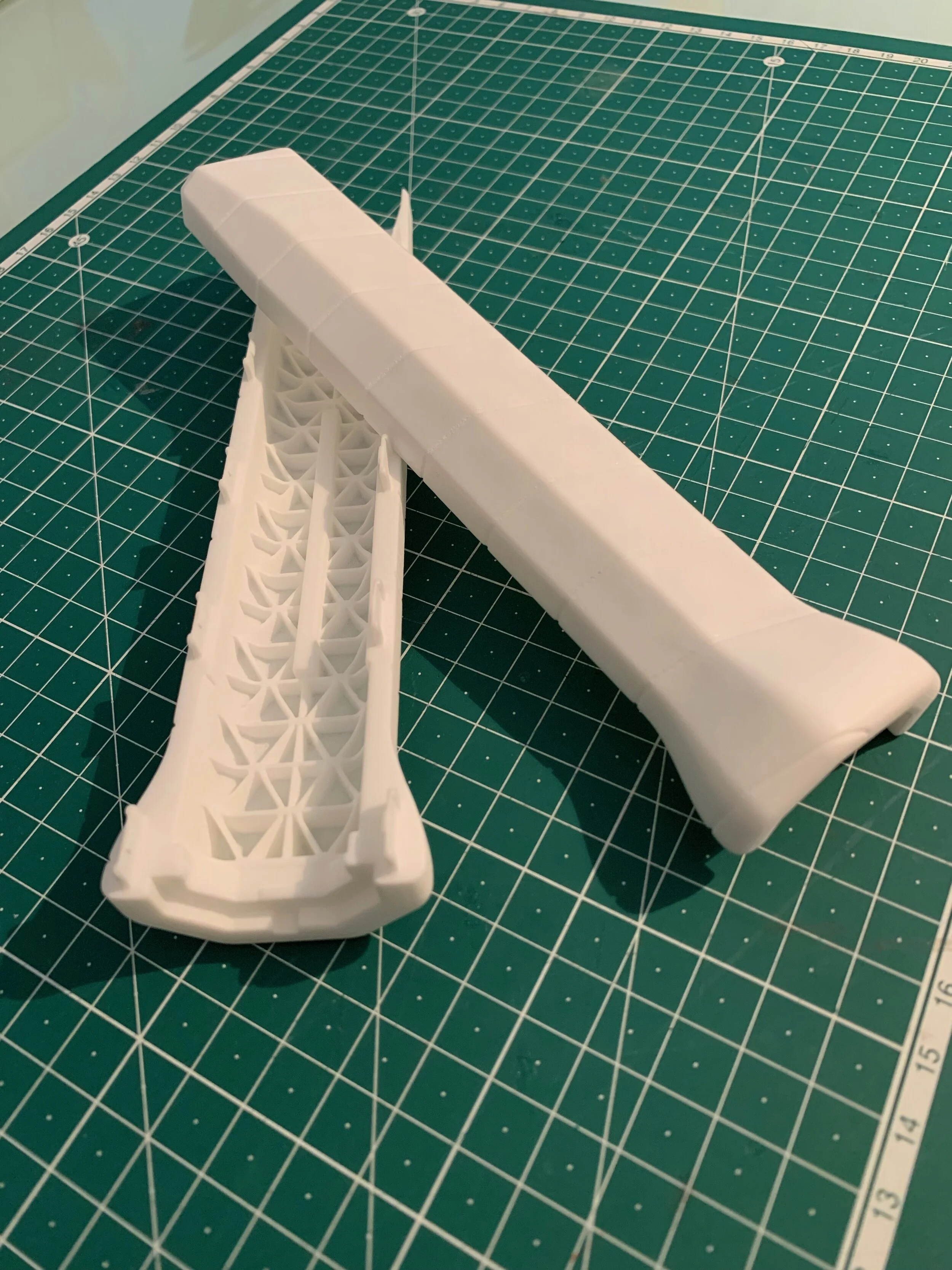 Our pallets are printed with 0.1mm of accuracy, meaning each and every pallet will come out exactly the same. The density and feeling in the hand will be identical every single time. There will be no issues with with centring the rackets as the pallets are 2 simple halves that lock into one another.